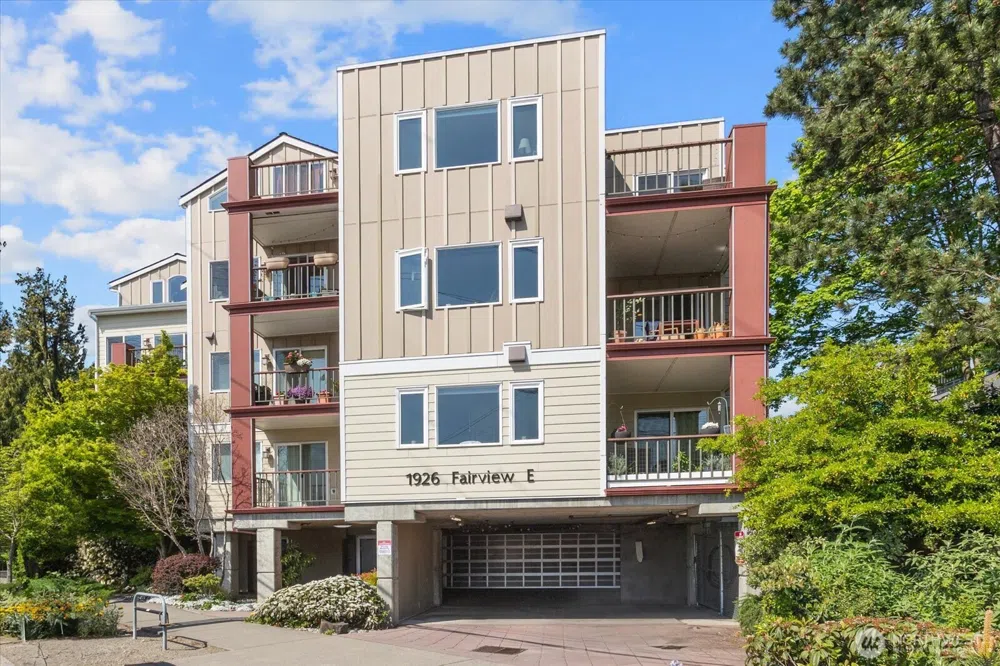 Get ready to summer in Eastlake! Just steps from the shores of Lake Union, this in-city home has everything you need. Enjoy morning coffee on your private balcony. Relax by the cozy fireplace on chilly days. Spacious bedroom with double closet and included wall-mounted TV. Modern bathroom has new dual sink vanity. Laundry is easy with in-unit washer/dryer. Secured garage parking, new elevator, and extra balcony storage make this the perfect Seattle place to call home. The Fairview is a well maintained & managed community with low HOA dues of $384/month which includes water, sewer, garbage, earthquake insurance. NO RENTAL CAP. Great location near coffee shops, restaurants, busline, University of Washington & South Lake Union.