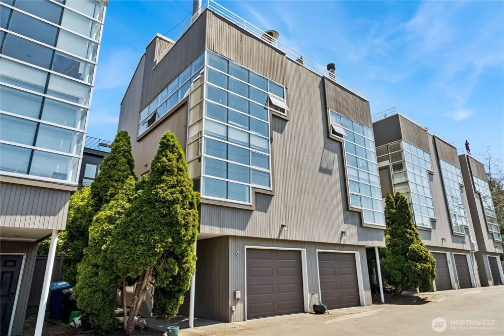 Just across the street from Lake Union, Lakewinds Townhome is in the heart of Eastlake. This multi-level home offers 2BD, 1.25BA, a private ROOFTOP deck, and an GARAGE. The top floor has an open kitchen and living area with a wall of windows, wood-burning fireplace, and tons of natural light. Upstairs, the 325 sq ft rooftop deck gives you panoramic views from downtown Seattle to Gas Works Park. On the lower levels, you'll find two equally spacious bedrooms, and a full bathroom. There's also a fully fenced backyard, powder room for guests, and a laundry room. Amazing storage and parking! 380 SQFT attached garage that easily fits your kayak, bike, and more- plus a second deeded parking spot out front.